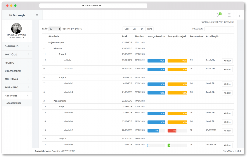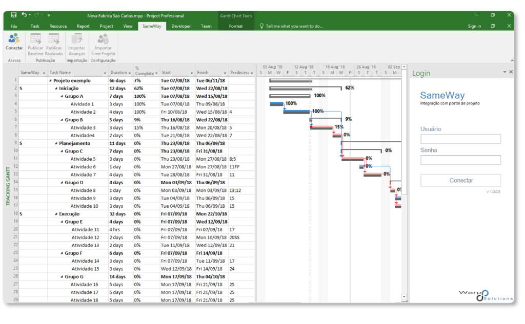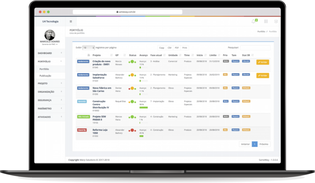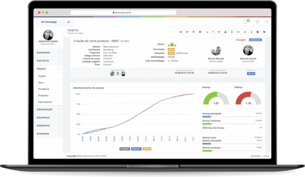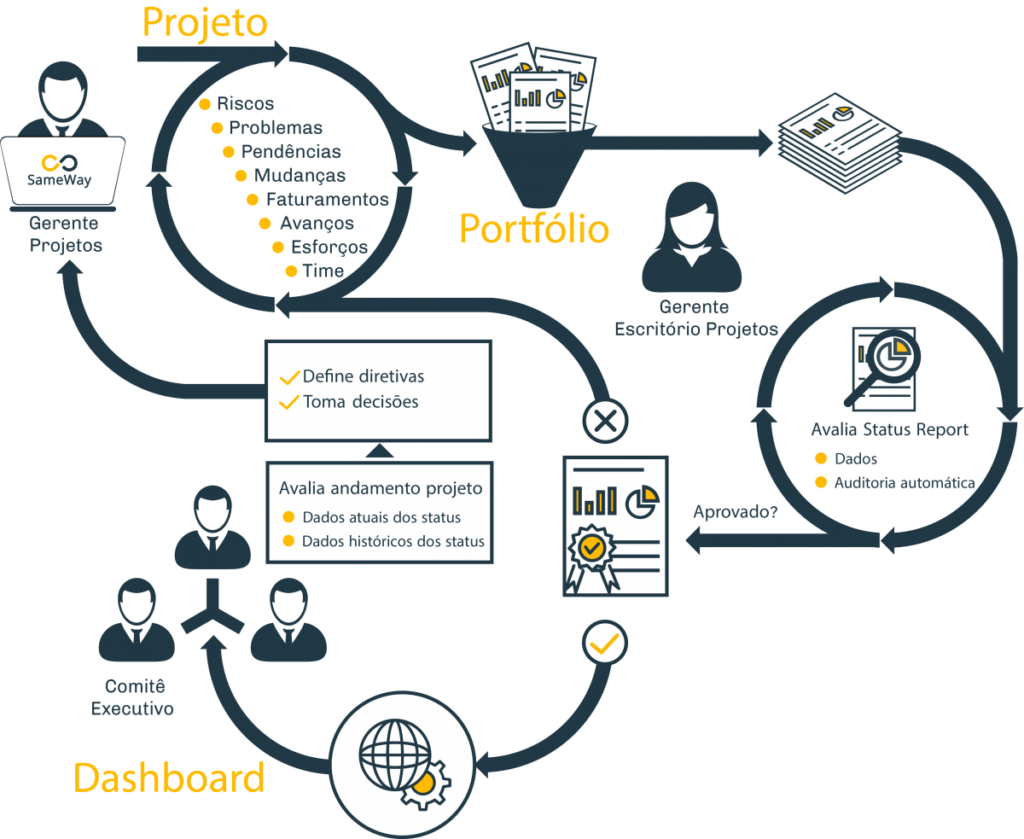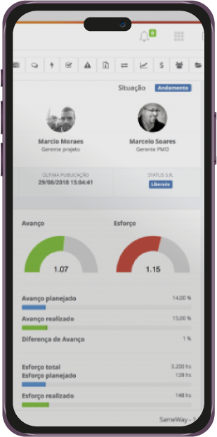SameWay é uma aplicação na nuvem que tem por finalidade facilitar o monitoramento e controle de projetos, com abrangência em todas as áreas e níveis hierárquicos da empresa.